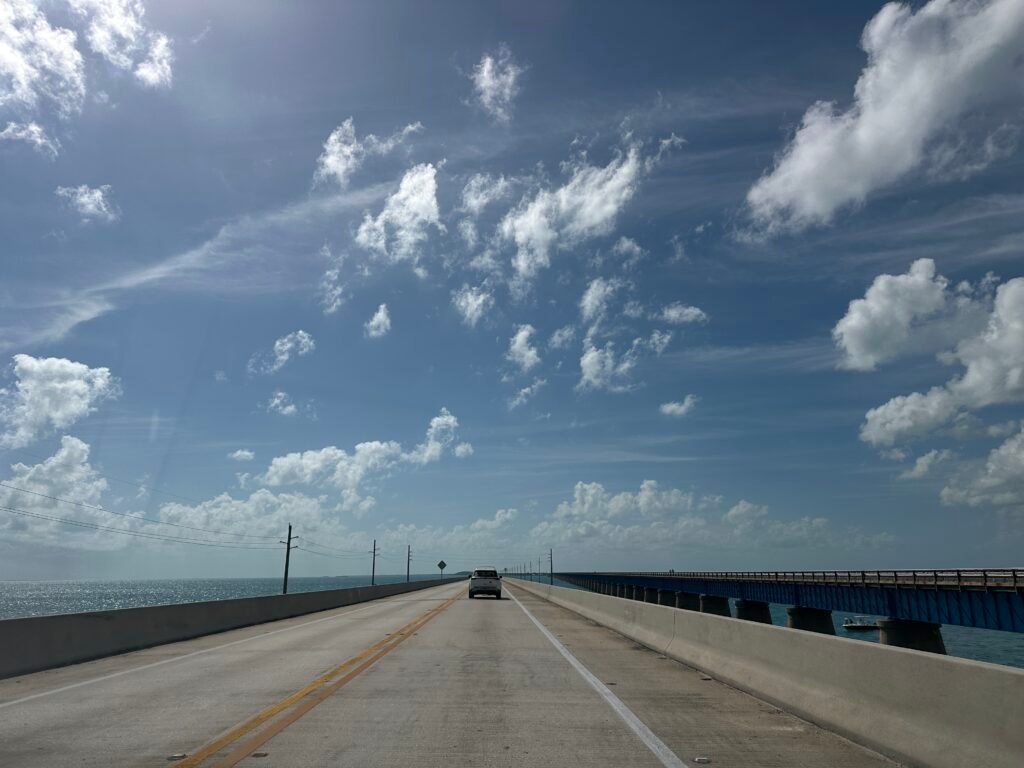 플로리다 키를 잇는 수십 개의 다리를 지나가긴 합니다.